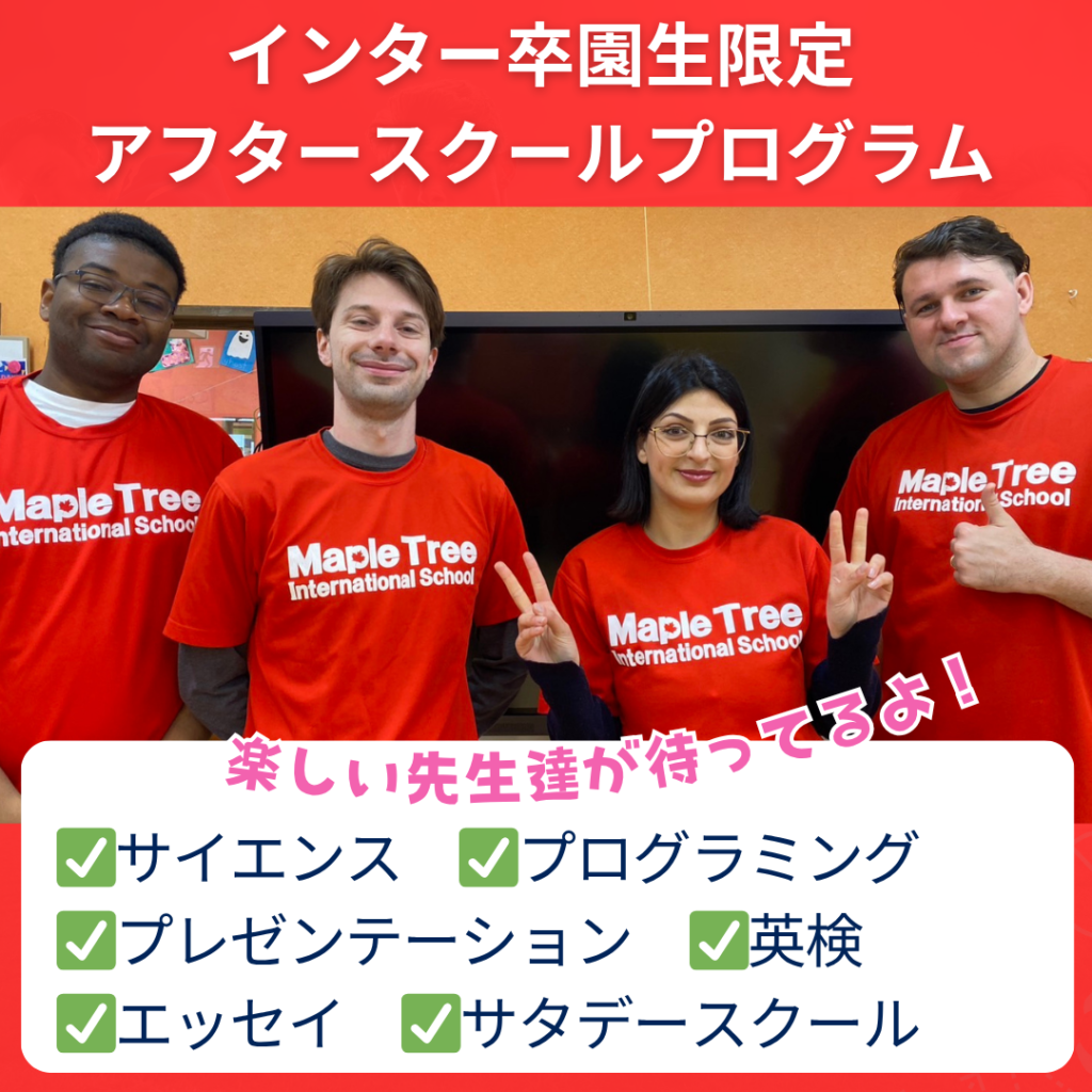 インターナショナルスクール卒園生向け、アフタースクール体験会のお知らせ。
